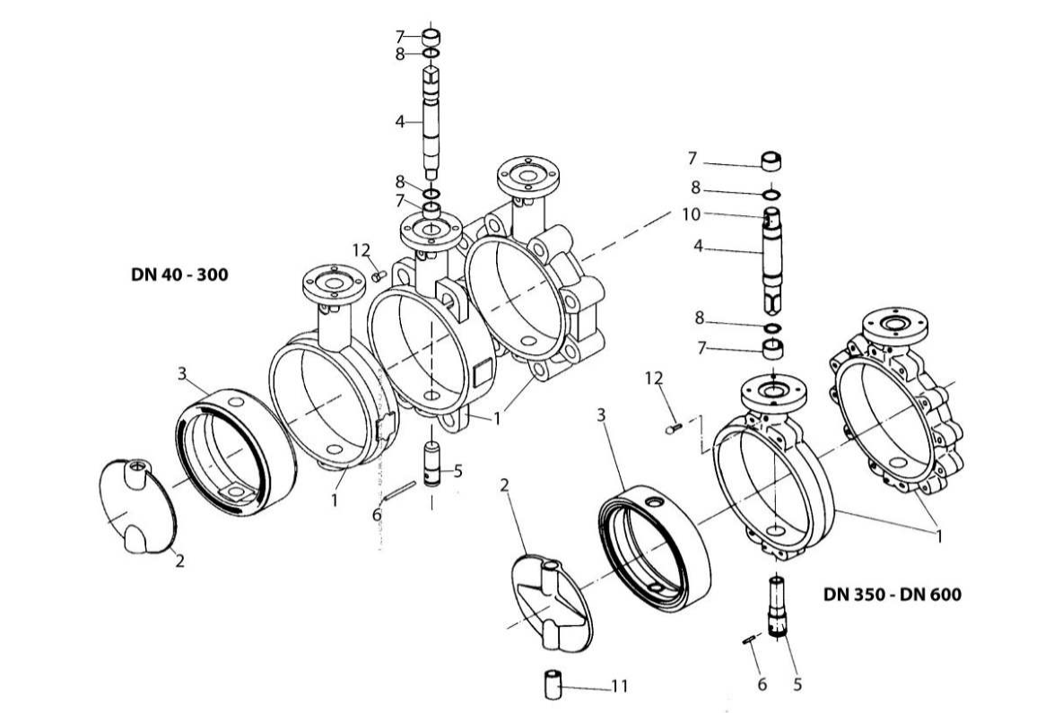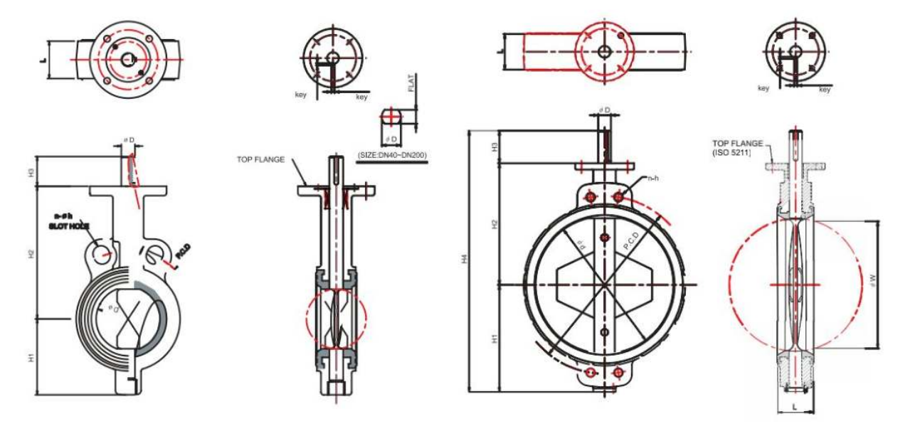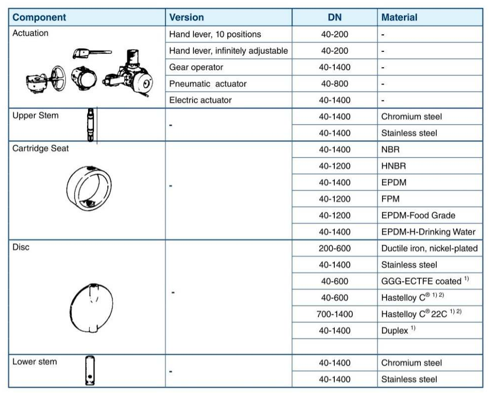 - Body and Disc: cast iron, ductile iron, cast steel, stainless steel, steel.