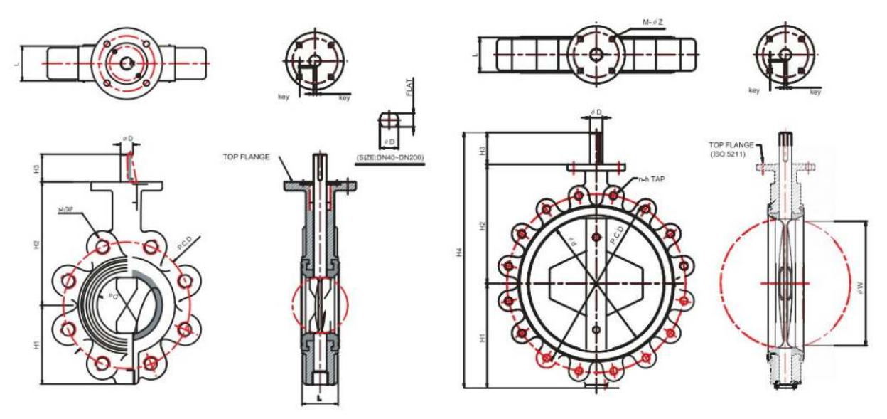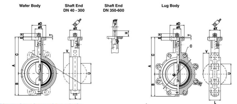 WLCD Series Center Lined Butterfly Valve / Lug Type Dimension